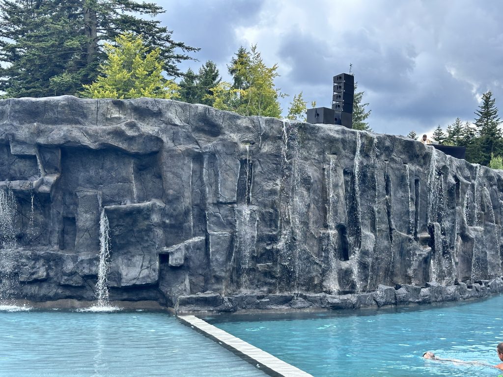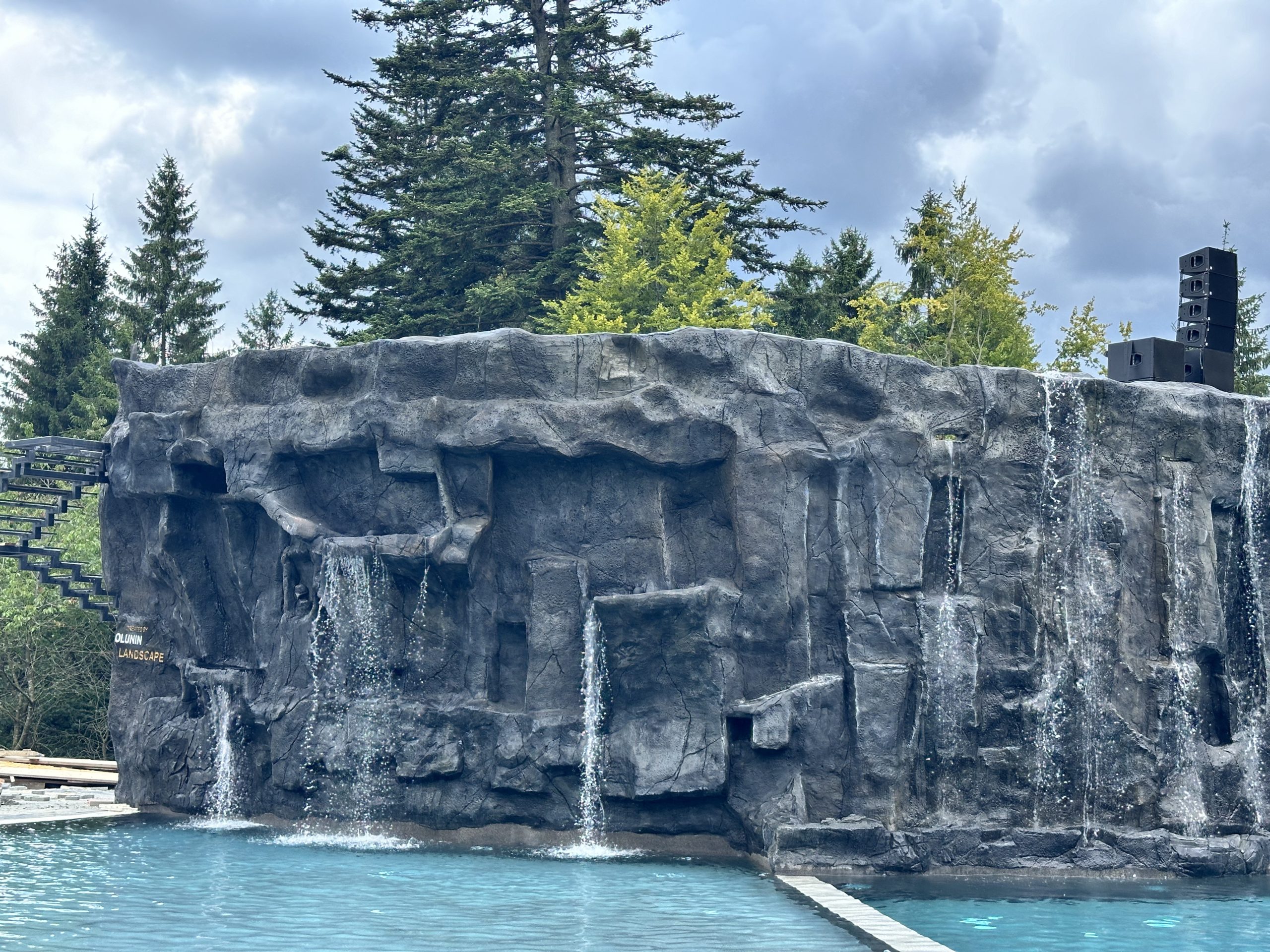 Скелі з арт бетону можуть приховувати технічні елементи або інтегрувати підсвітку та водні системи.