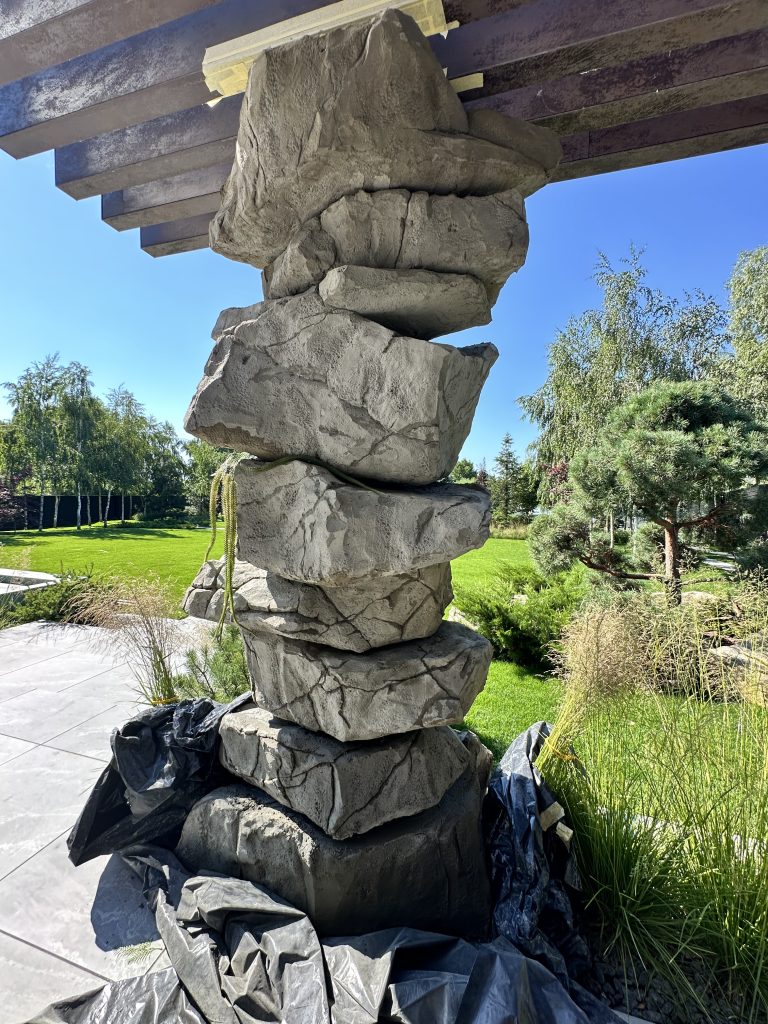 Штучні скелі з арт бетону в ландшафтному дизайні дозволяють реалізувати індивідуальні форми, що виглядають як натуральний камінь, але мають меншу вагу та ширші можливості застосування. Це оптимальний вибір для сучасних резиденцій, заміських будинків, готельних комплексів та SPA-зон.