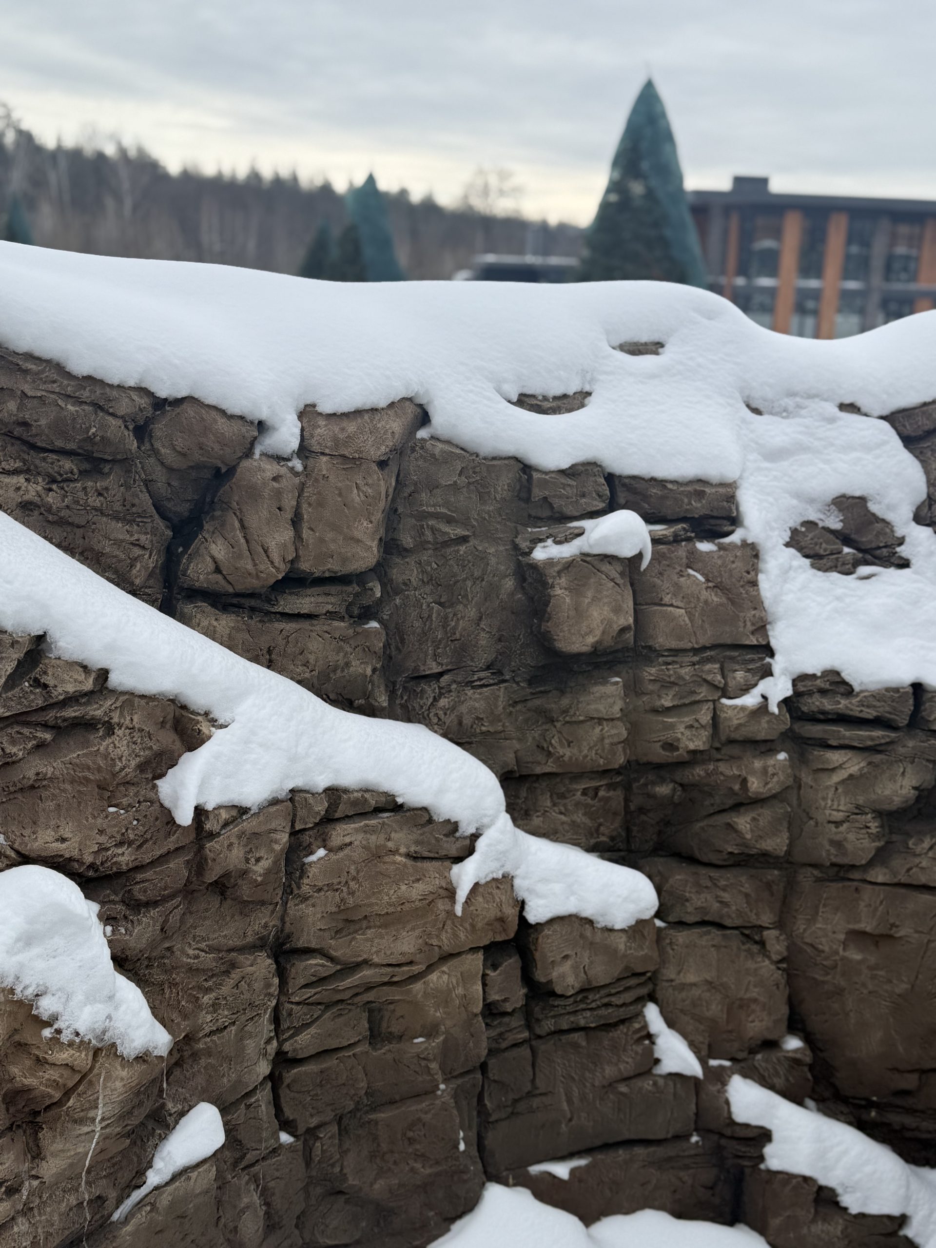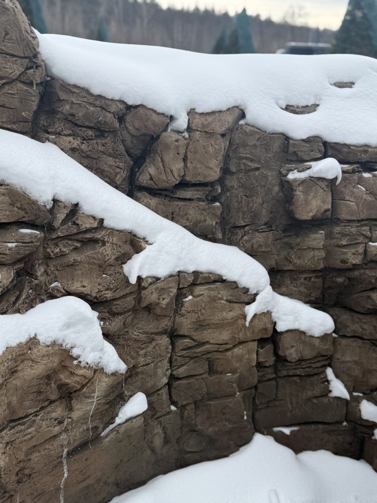 Штучні скелі з арт бетону витримують перепади температур, вологу та мороз. Термін експлуатації — 20–40 років.