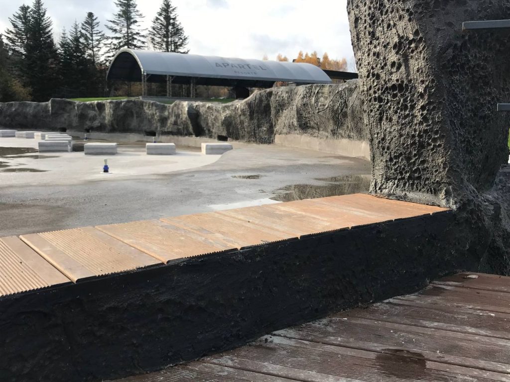 Штучні скелі з арт бетону активно використовуються у: